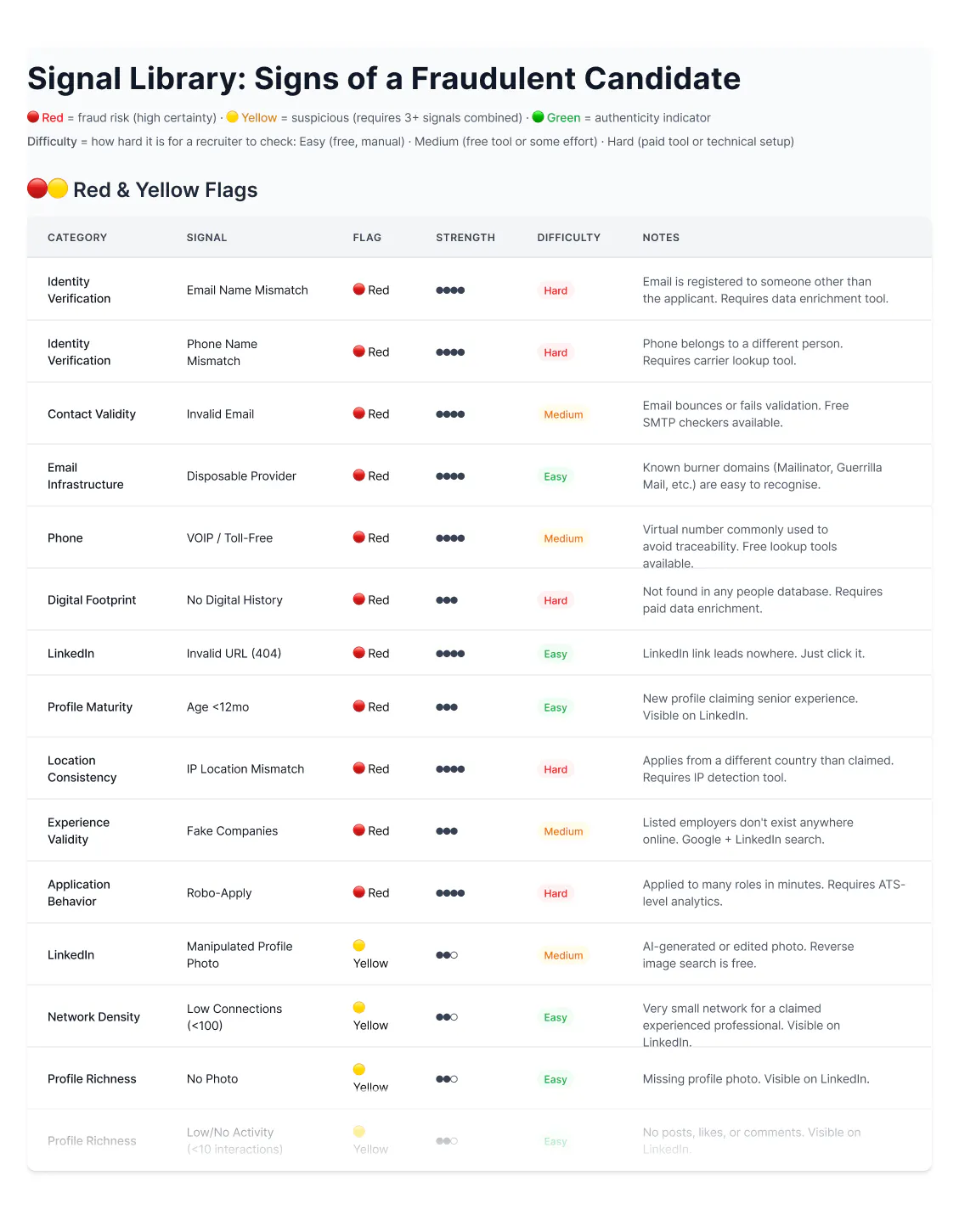 It now has 60+ signals, color-coded by severity and rated by how hard each one is to check. We're sharing it for free.